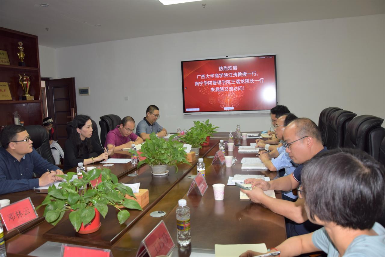 ag九游会管理公司、广西大学商公司、南宁公司管理公司分别介绍了各自公司的基本情况,并围绕专业建设、制度建设、文化建设、实验室建设等方面内容展开交流,表示之后将继续加强交流合作,共同促进发展。