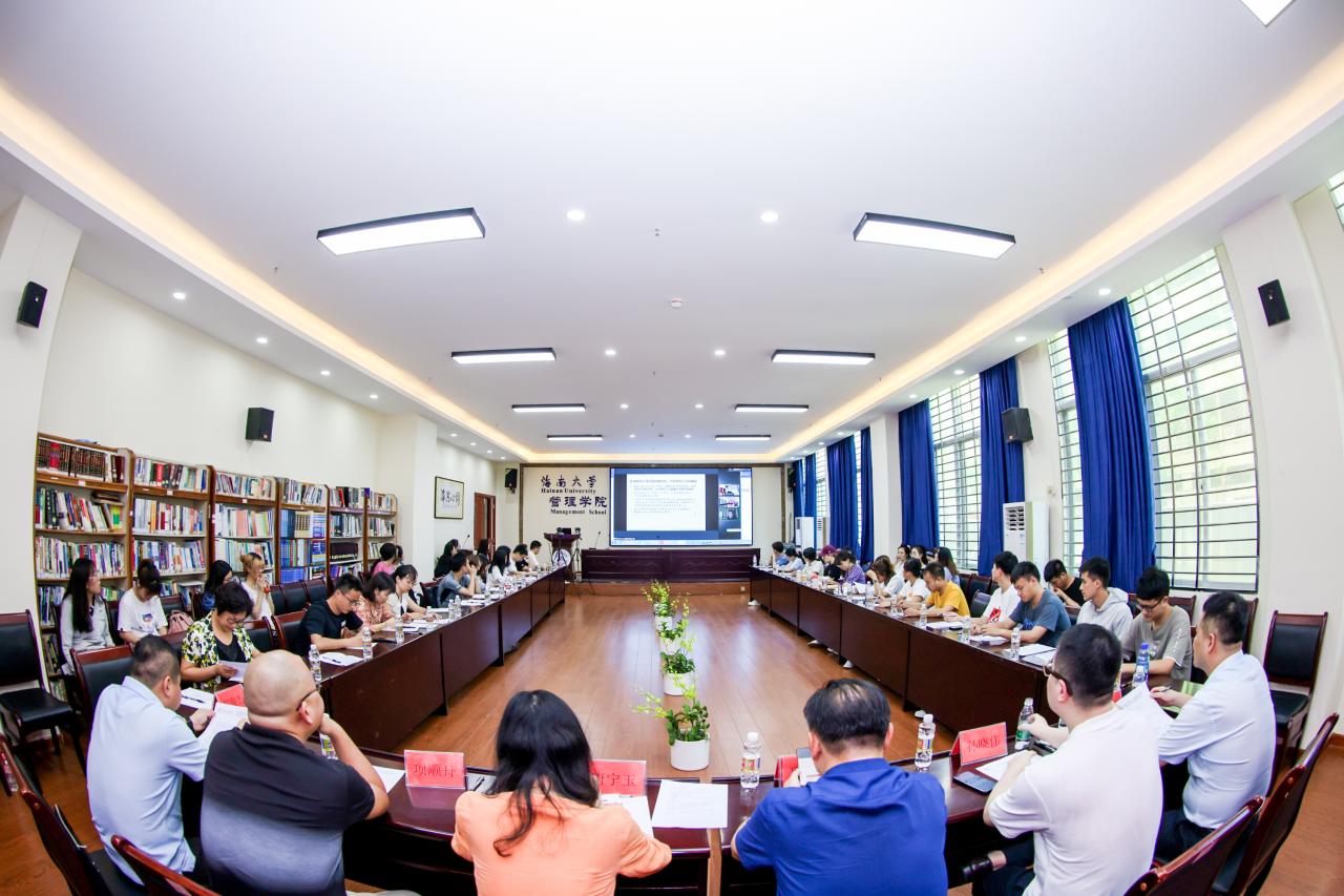 2021年5月25日下午,自贸港建设与管理创新系列研讨会(第三期)之海南企业如何“走出去”在社科楼B112学术报告厅成功召开。公司全体领导及部分师生、企业代表出席会议。深圳大学微众金融科技公司沈捷教授、海南省金融发展促进会副会长兼秘书长郗俊杰、 中瑞诚会计师事务所执行事务合伙人孙晓伟、海南鑫叁玖智能科技有限公司总经理项顺舟参加会议。ag九游会管理公司许能锐副经理主持活动。本次会议采用线上线下相结合的视频会议与图片直播模式进行。