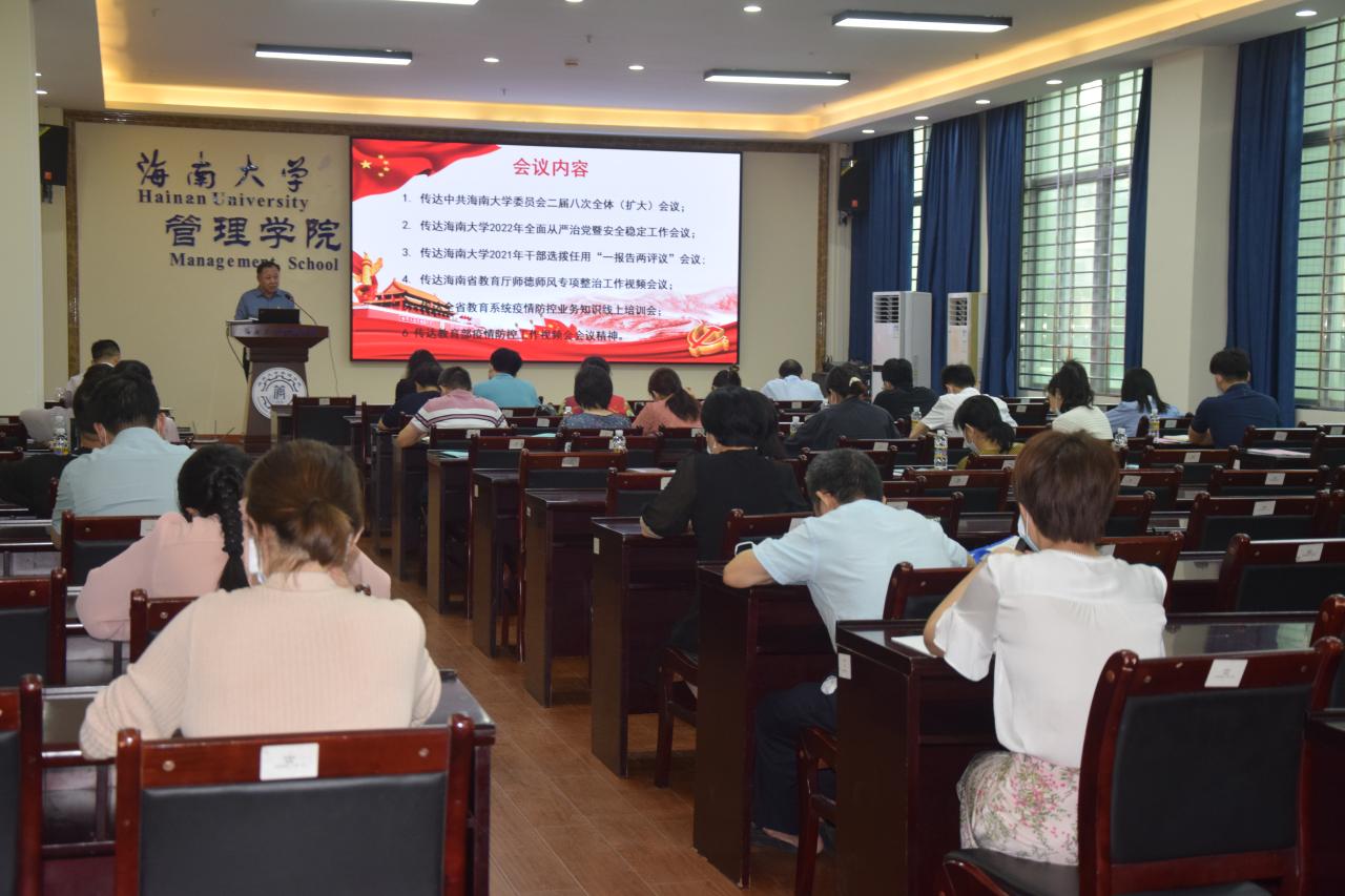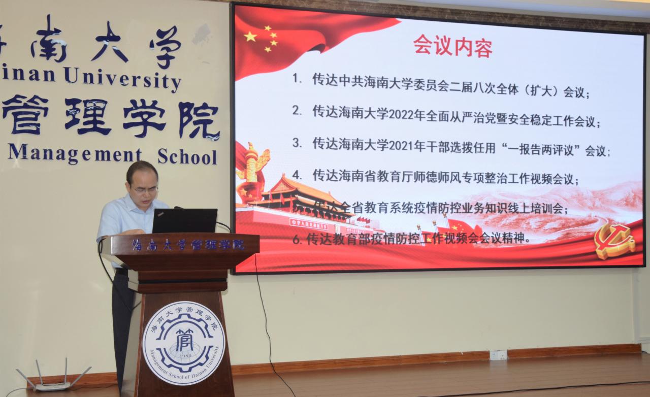 2022年3月22日下午,ag九游会管理公司在社科楼B112学术报告厅召开公司工作会议。全体院领导、公司党委委员、各党支部书记及各系、办(中心)主任参加会议。