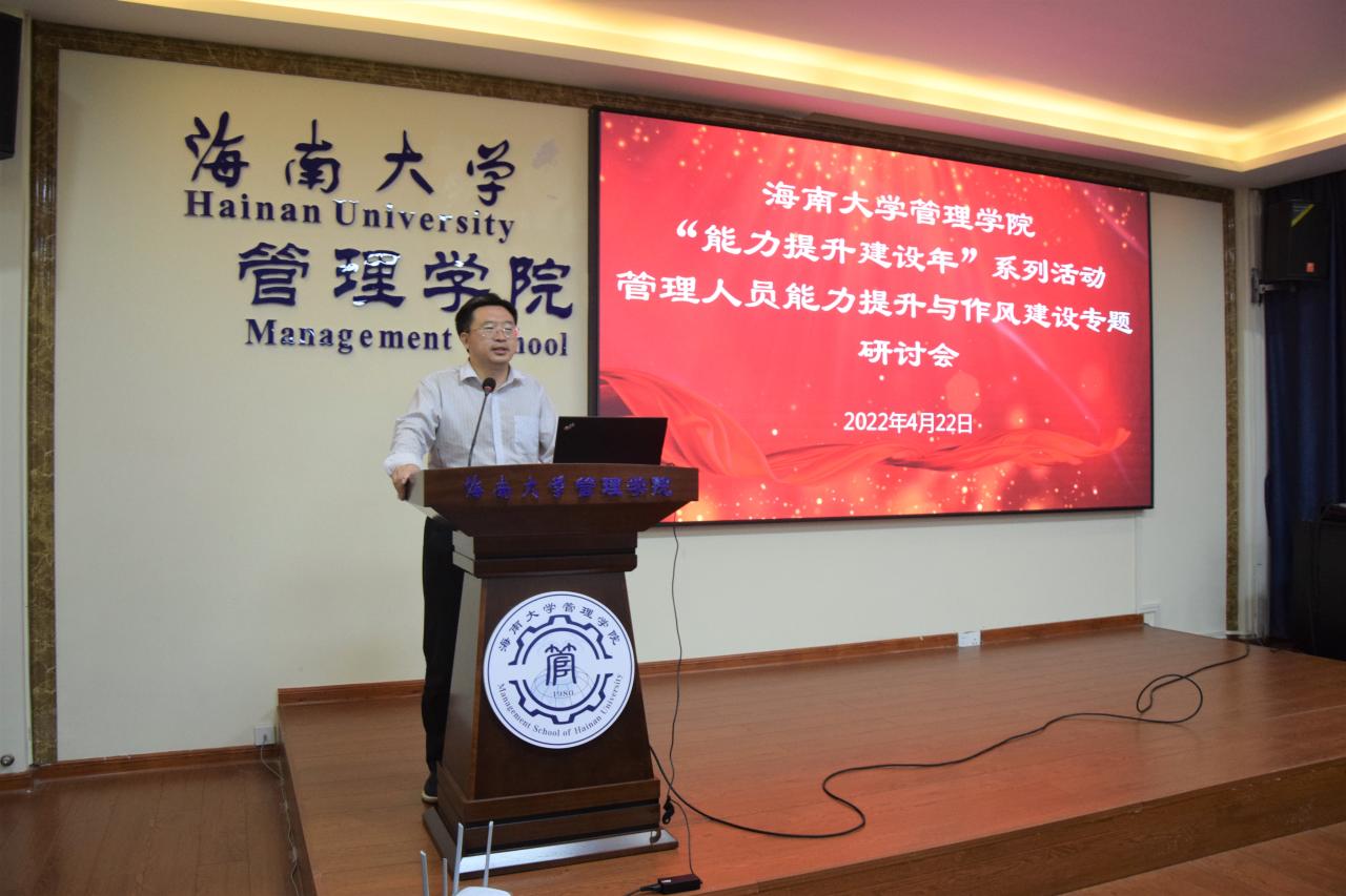 2022年4月22日下午,管理公司在社科楼B112学术报告厅召开“能力提升建设年”系列活动之管理人员能力提升与作风建设专题研讨会。邢谷川书记、付景涛副经理及全体综合管理人员、各系主任出席会议。