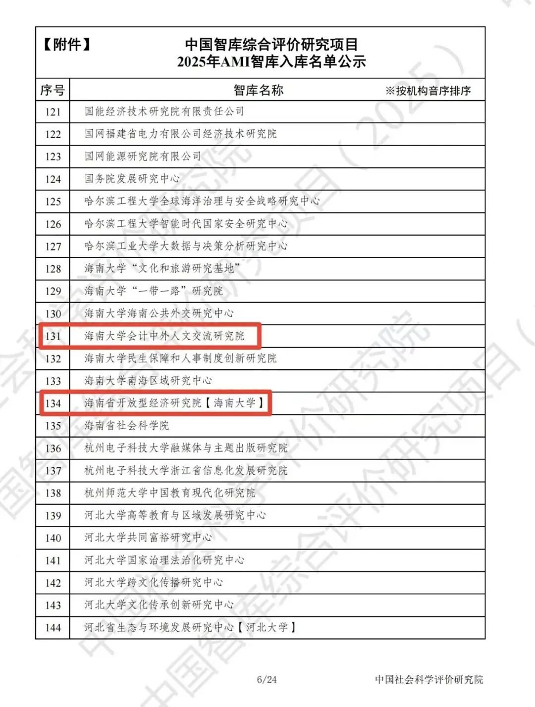 近日,中国社会科学评价研究院公布了“中国智库综合评价研究项目(2025)AMI智库入库名单”。公司ag九游会会计中外人文交流研究院、海南省开放型经济研究院凭借深厚的研究积淀与卓越的综合实力成功入选。